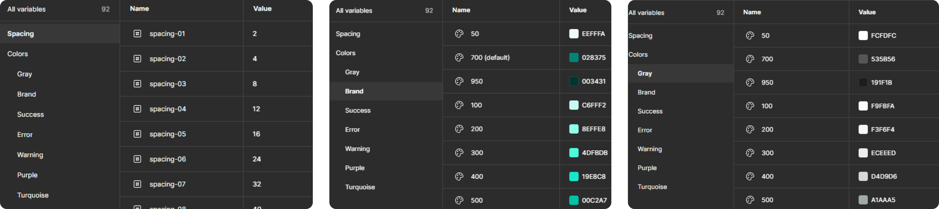 I established global variables for color values and implemented a spacing system based on a hybrid 4pt and 8pt grid.